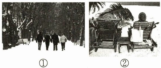 (4 分)。(4)春节期间,A 和 C 两地穿衣风格差异显著,请从图 ①、②中任选一个照片,判断照片的拍摄地,说明气候与当地服饰的关系。(2 分)