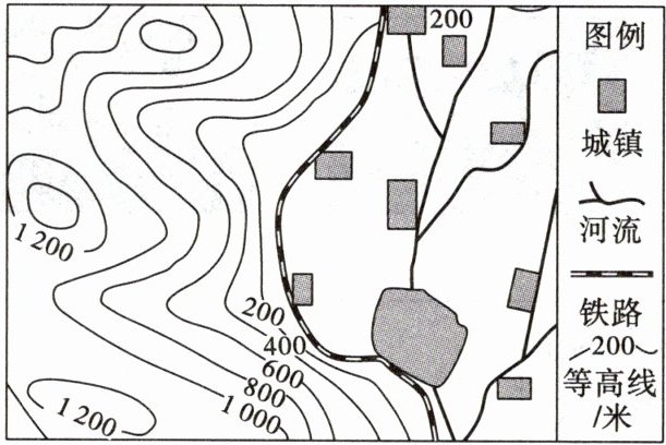 4. 聚落的建筑除了材质和造型与环境密切相关外,其分布也深受环境影响。根据下图所示信息描述该地区城镇的分布特点。