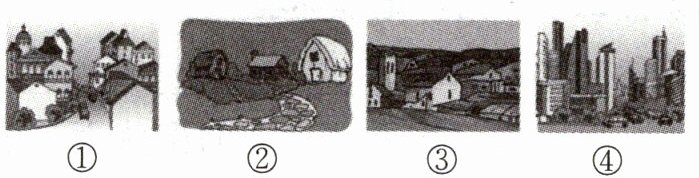 1.C 2.A 第1题,读图可知,图中房屋低矮,规模较小,人口稀疏,是农村的景观特征。第2题,乡村是人口规模不大,主要从事农业生产活动的居民聚居地;城市是人口达到一定规模,主要从事非农业生产活动的居民聚居地,因此造成各地聚落景观差异的主要原因是生产方式和生活方式的不同。