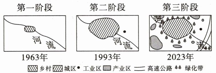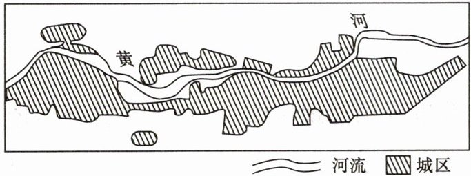 5.A 结合图例读图可知,图中城区沿河流呈条带状分布。