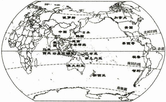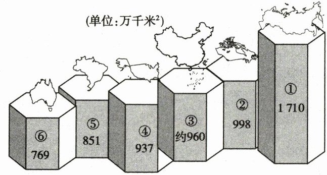 下图为世界上面积居前六位的国家示意图。读图,完成1~3题。