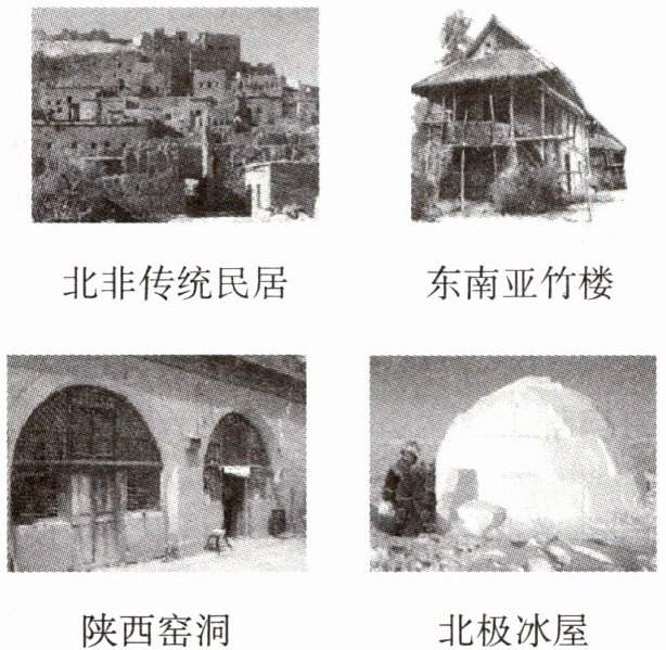 )A.北非传统民居厚墙加小窗,防寒风又保暖