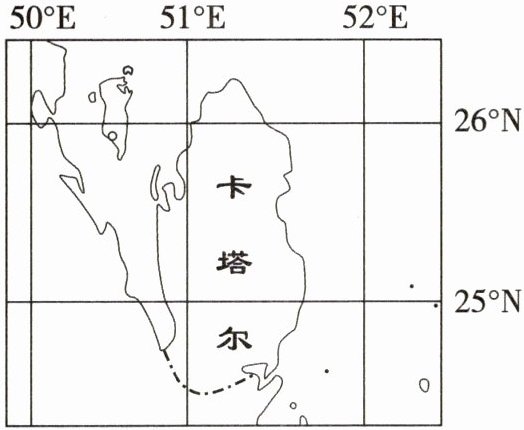 [典题 2] 2022 年 11 月 21 日至 12 月 18 日,第 22 届世界杯足球赛在卡塔尔举行。读图,完成(1)~(3)题。
