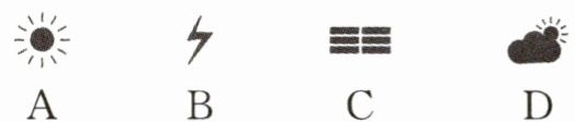 (1)题,A项天气符号表示晴,B项天气符号表示雷电天气,C项天气符号表示雾,D项天气符号表示多云。故最适宜开展观星活动的是晴天,故选A项。第