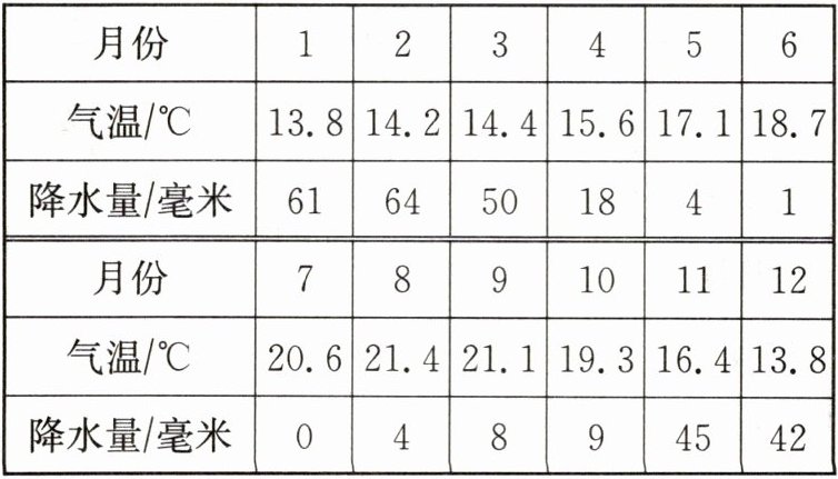 6.气温特点:冬季温和,夏季炎热。降水特点:冬季降水少,夏季降水多。
