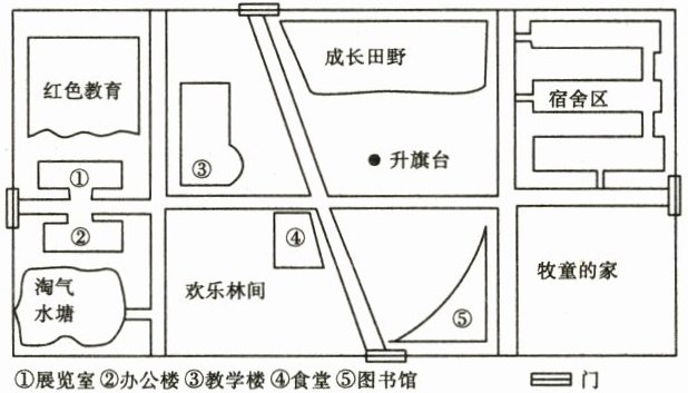 方向。(2) 同学们在图书馆学习后,计划去成长田野开展劳动实践活动,想估算一下两地之间的距离。同学们