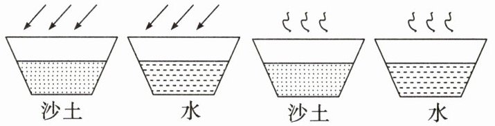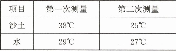 (1)题,比较表中数据可知,同时对沙土和水加热,沙土升温快。沙土代表陆地,水代表海洋。由此推测夏季时,同纬度的海洋和陆地,陆地气温较高。读图可知,同时把沙土和水移到空调室内,水降温慢。由此推测冬季时,同纬度的海洋和陆地,海洋气温较高。第