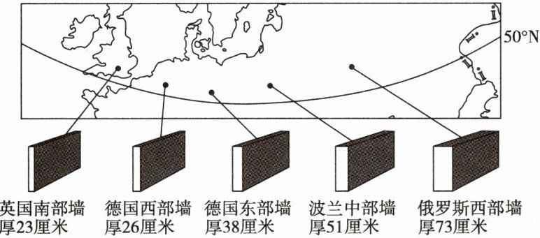 [教学素材变式]读欧洲墙壁厚度的变化示意图,完成4~5题。