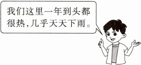 (2)题,该地区气候特征是全年高温多雨,气温年较差小,属于热带雨林气候,位于赤道附近,纬度低,影响该地区“一年到头都很热”的主要因素是纬度位置。第