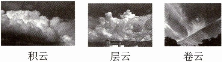 (1)从形态上看,云主要有积云、层云和卷云。结合下图分别描述它们的外形特征。