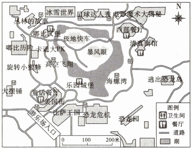 小红一家顺利到达该乐园。下图为该乐园平面图。