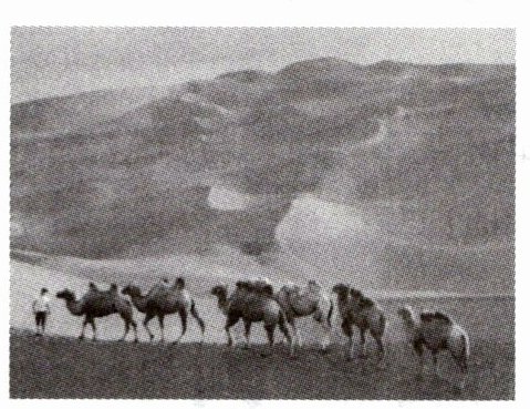 (4)图示为312国道途经的库姆塔格沙漠景观,该景观反映了当地最主要的自然环境特征是什么?你还知道哪些地区的风土人情?