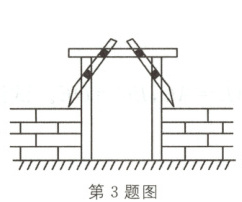 3. 如图,木工师傅做窗框时,常常像图中那样钉上两条斜拉的木条起到稳固作用,这样做的数学原理是(