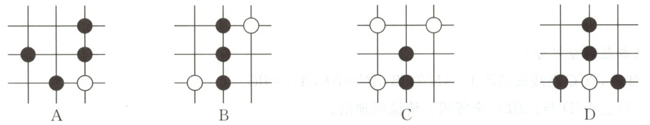 1. 围棋起源于中国,古代称之为“弈”,至今已有4000多年的历史。下面是棋谱的四个部分,由黑白棋子摆成的图案是轴对称图形的是(