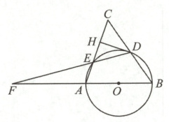 $AC$,垂足为 $H$,连接 $DE$ 并延长交 $BA$ 的延长线于点 $F$.