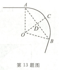 13. 如图,一条公路的转弯处是一段圆弧AB,点O是这段弧所在圆的圆心,AB=40 m,点C是$\widehat{AB}$的中点,且CD=10 m,则这段弯路所在圆的半径为