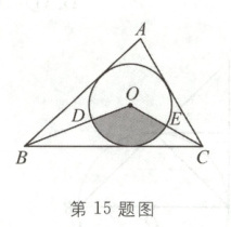 15. 如图,在△ABC中,∠A=80°,半径为3 cm的⊙O是△ABC的内切圆,连接OB,OC,则图中阴影部分的面积是