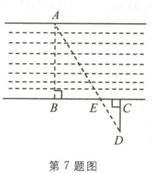 7.如图,为估算某河的宽度,在河对岸选定一个目标点$A$,在近岸取点$B,C,D$,使得$AB\perp BC$,