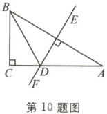 10.如图,在$\triangle ABC$中,$\angle C = 90^{\circ}$,$AC = 12$,$AB$的垂直平分线$EF$交$AC$于点$D$,连接$BD$.若$\cos\angle BDC = \frac{5}{7}$,则$BC$的长是(
