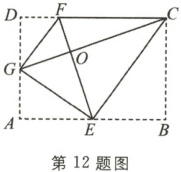12.如图,将矩形$ABCD$沿着$GE,EC,GF$翻折,使得点$A,B,D$恰好都落在点$O$处,且点$G,O,C$在同一条直线上,同时点$E,O,F$在另一条直线上.小炜同学得出以下结论:①$GF// EC$;