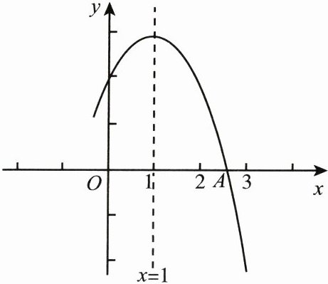 15. 如图是二次函数$y = ax^2 + bx + c(a, b, c$是常数,$a \neq 0)$图象的一部分,与$x$轴的交点$A$在点$(2, 0)$和点$(3, 0)$之间,对称轴是直线$x = 1$. 对于下列说法:①$ab < 0$;②$2a + b = 0$;③$3a + c > 0$;④$a + b \geq m(am + b)$($m$为实数);⑤当$-1 < x < 3$时,$y > 0$. 其中正确的是().