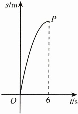 12. 水平地面上一个小球被推开后向前滑行,滑行的距离$s$与时间$t$的函数关系如图所示(图为抛物线的一部分,其中$P$是该抛物线的顶点),则下列说法中正确的是().
