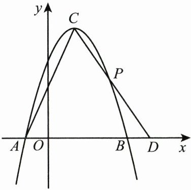 (2)如图,点$P$在$x$轴上方的抛物线上,连接$CP$并延长交$x$轴于点$D$,连接$AC$. 若$\triangle DAC$是等腰三角形,求点$D$的坐标.