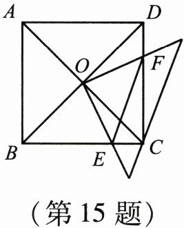 15. 如图,正方形 ABCD 的边长 AB=2,对角线 AC,BD 相交于点 O. 将直角三角尺的直角顶点放在点 O 处,三角尺两边足够长,与 BC,CD 相交于 E,F 两点,当将三角尺绕点 O 旋转时,线段 EF 的最小值为().