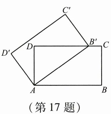 17. 如图,在矩形 ABCD 中,AB=5,AD=3. 矩形绕着点 A 逆时针旋转一定角度后得到矩形 AB′C′D′. 若点 B 的对应点 B′落在边 CD 上,则 B′C 的长为.