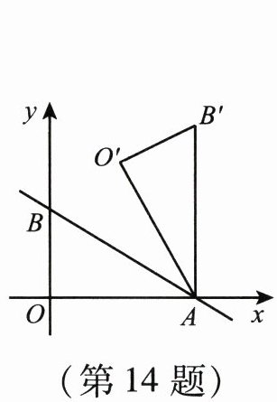 14. 如图,直线$ y=-\frac{\sqrt{3}}{3}x+2 $与 x 轴、y 轴分别交于 A,B 两点,把△AOB 绕点 A 顺时针旋转 60°后得到△AO′B′,则点 B′的坐标是().