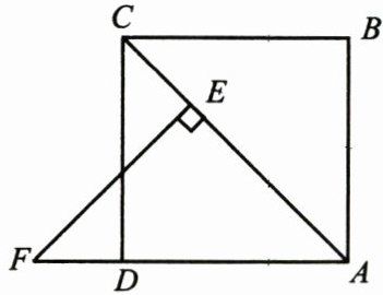 如图,AC 是正方形 ABCD 的对角线,△ABC 经过旋转后到达△AEF 的位置(旋转角小于 180°),点 E 在 AC 上,点 F 在 AD 的延长线上.