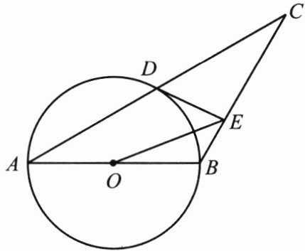 如图,在△ABC中,AB = BC,以AB为直径的⊙O交AC于点D,DE与⊙O相切,交BC于点E,连接OE,CD = $2\sqrt{3}$,∠ACB = 30°.