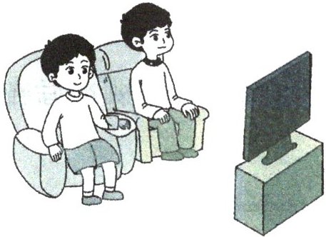 6. 下图中的两位小朋友看电视看得多人迷呀!相信你和他们一样,也很爱看电视吧!丰富多彩的电视节目有着巨大的诱惑力,不知不觉中除了抢走时间,还抢走了______,抢走了______……