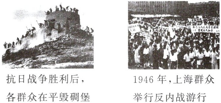(1)①背景:抗日战争胜利后,全国人民渴望和平;国民党为发动内战争取时间。(2分)②主要因素:政治立场不同。(2分)