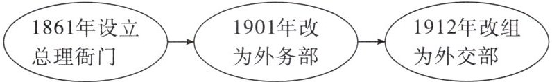 )(图中内容:1861年设立总理衙门→1901年改为外务部→1912年改组为外交部)