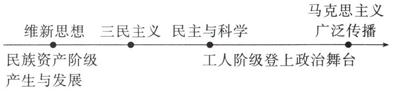 (图中内容:民族资产阶级产生与发展→维新思想→三民主义→民主与科学→工人阶级登上政治舞台→马克思主义广泛传播)
