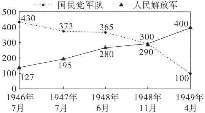 5. 下图是人民解放战争时期国民党军队与人民解放军兵力变化示意图(单位:万人)。这一变化主要表明(