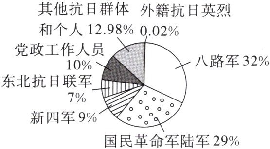 4. 下图为抗日战争时期抗日英烈与英雄群体的人员构成统计图。从图中信息可知(