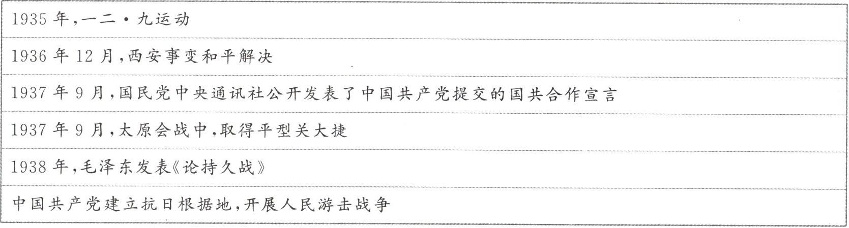 请你从上表所列抗战史实中任选两项,自拟观点,进行论述。(要求:观点明确,史论结合,条理清晰)