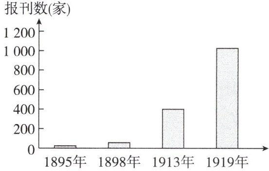 1. (2024黔西)如图是1895—1919年中国报刊数量统计图。根据史料实证核心素养,说法合理的是(