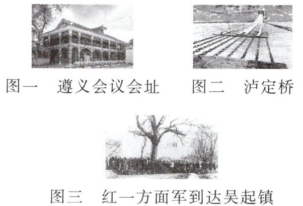(或图二泸定桥:1935年5月29日,中国工农红军长征途经这里,以22位勇士为先导的突击队,冒着敌人的枪林弹雨,在被已经拆除了80余米桥板的铁索桥上匍匐前进,一举消灭桥头守卫并与东岸部队合围占领了泸定桥。通过泸定桥能再现当时战争的不易、残酷,让后人对革命先烈勇于斗争、百折不挠、不怕牺牲的革命精神有深刻认识等。或图三红一方面军到达吴起镇:再现当时会师的场景,展现了中国工农红军团结、拼搏和奋斗的精神,激励着后人在实现中华民族伟大复兴的道路上砥砺前行。)(任选一幅图片进行说明,言之有理即可)