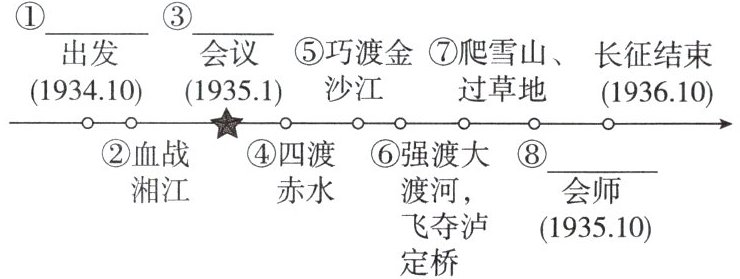 (1)①瑞金;③遵义;⑧吴起镇。(3分)