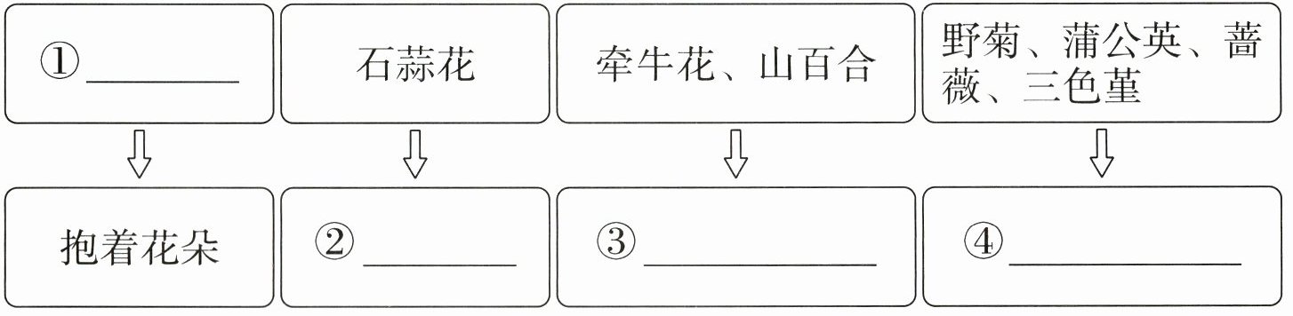 ①______ 石蒜花 牵牛花、山百合 野菊、蒲公英、蔷