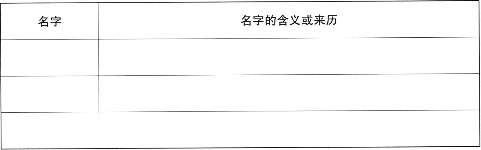 一、你知道自己的名字有什么含义吗?采访家里人,向他们了解自己和家人名字里的故事。
