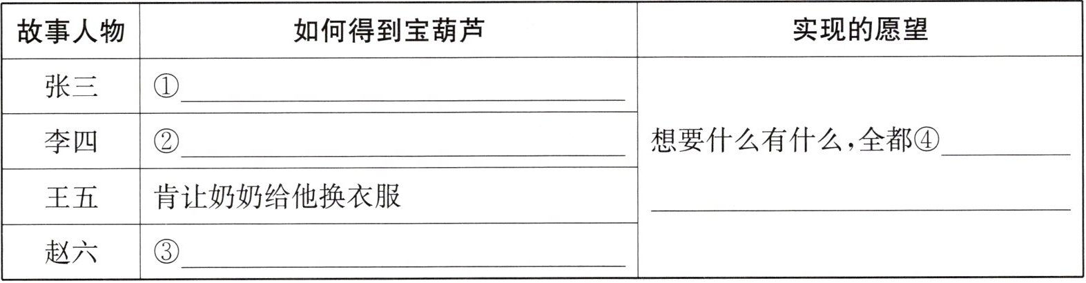 三、根据文中奶奶讲的故事,完成下面的表格。