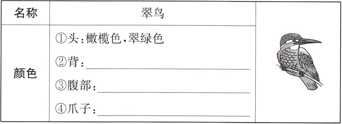 3. 结合上题圈出的词语,可知翠鸟( )。
