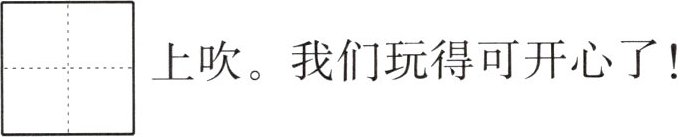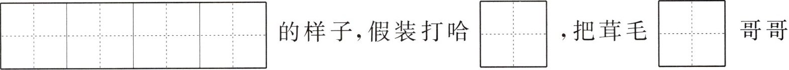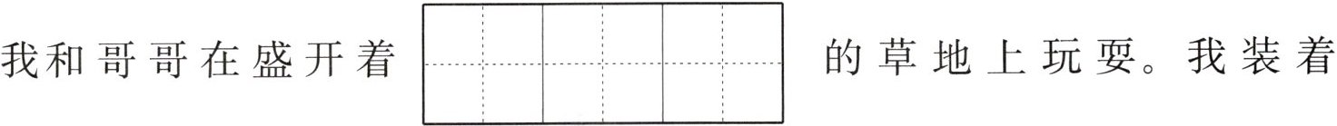 我和哥哥在盛开着$\begin{array}{|c|c|c|}\hline & & \\\hline\end{array}$\begin{array}{|c|c|c|}\hline & & \\\hline $$\begin{array}{|c|c|c|}\hline pú & gōng & yīng \\\hline\end{array}\\\hline $的草地上玩耍。我装着$\begin{array}{|c|c|c|c|c|}\hline & & & & \\\hline\end{array}$\begin{array}{|c|c|c|c|c|}\hline & & & & \\\hline $$\begin{array}{|c|c|c|c|c|}\hline yì & běn & zhèng & jīng \\\hline\end{array}\\\hline $的样子,假装打哈$\begin{array}{|c|}\hline & \\\hline\end{array}$\begin{array}{|c|}\hline & \\\hline $$\begin{array}{|c|}\hline qiàn \\\hline\end{array}\\\hline $,把茸毛$\begin{array}{|c|}\hline & \\\hline\end{array}$\begin{array}{|c|}\hline & \\\hline $$\begin{array}{|c|}\hline cháo \\\hline\end{array}\\\hline 哥哥\begin{array}{|c|}\hline & \\\hline\end{array}\begin{array}{|c|}\hline & \\\hline $$\begin{array}{|c|}\hline liǎn \\\hline\end{array}\\\hline $上吹。我们玩得可开心了!