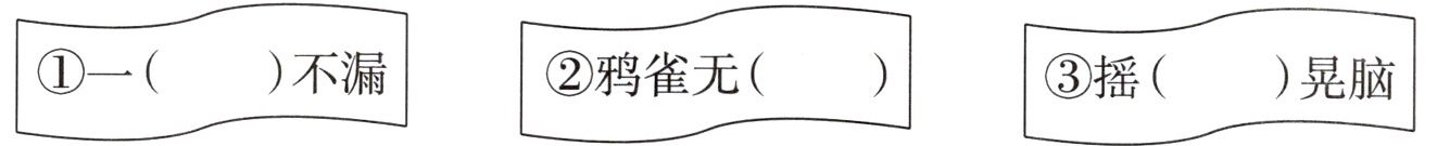 |①一( )不漏|②鸦雀无( )|③摇( )晃脑|