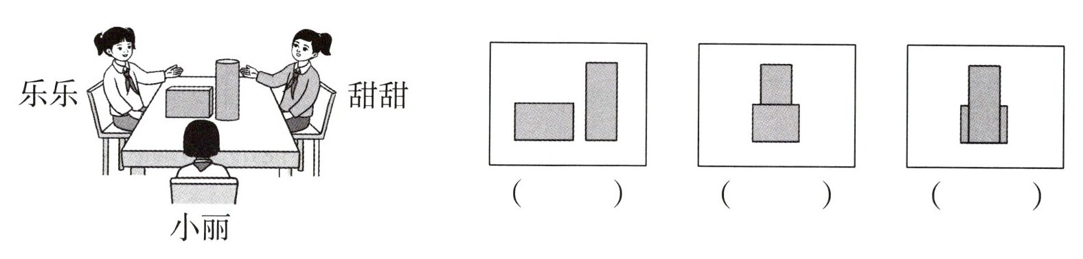 1. 请你根据上面两名同学的描述想一想,在正确摆法下面的( )里画“√”。