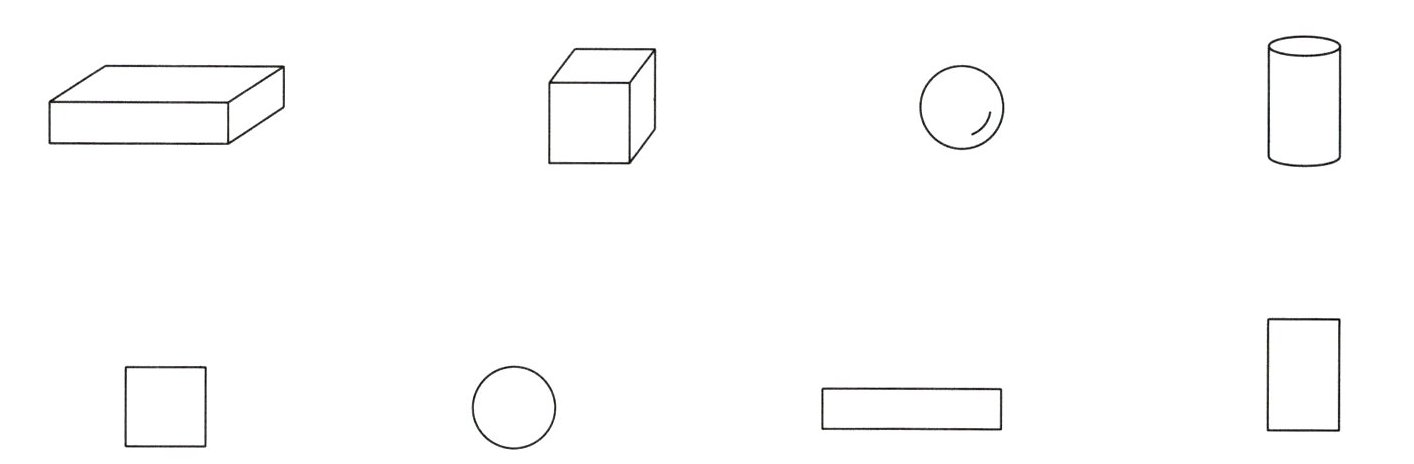 二、从前面看这几个几何体,分别看到的是什么图形。连一连。